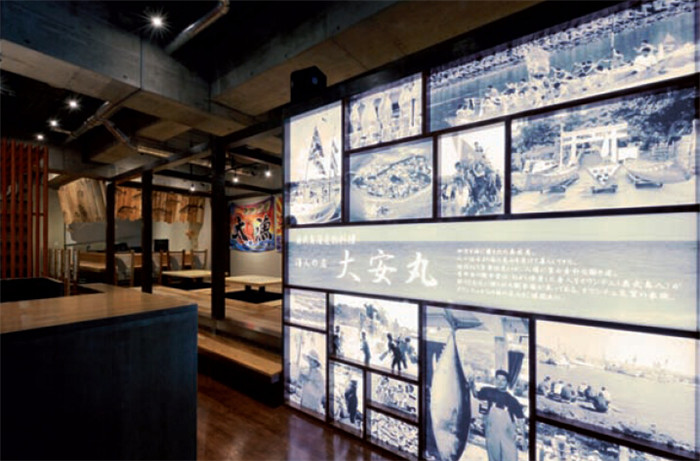 真正的捕鱼工具和设备装饰内部,有效地产生了捕鱼的生动画面的结果。这种效果是由众多享受Taian-maru的食客协同增强的。