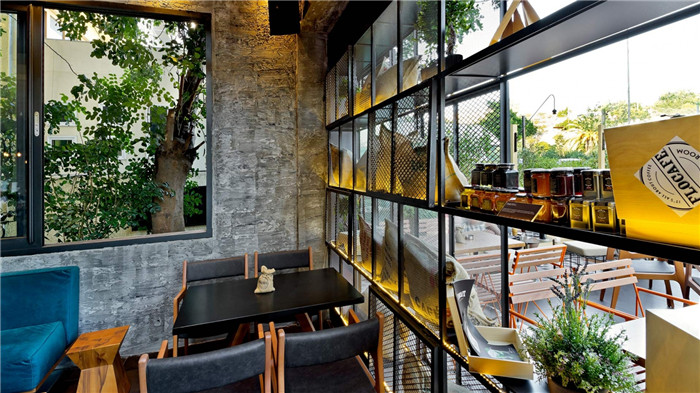 Flocafé咖啡厅主要以工业风为主。裸露的砖墙、混凝土吊以及铁艺的装饰很好的呈现出咖啡厅的整体风格,从而创造出一个不一样的用餐环境。