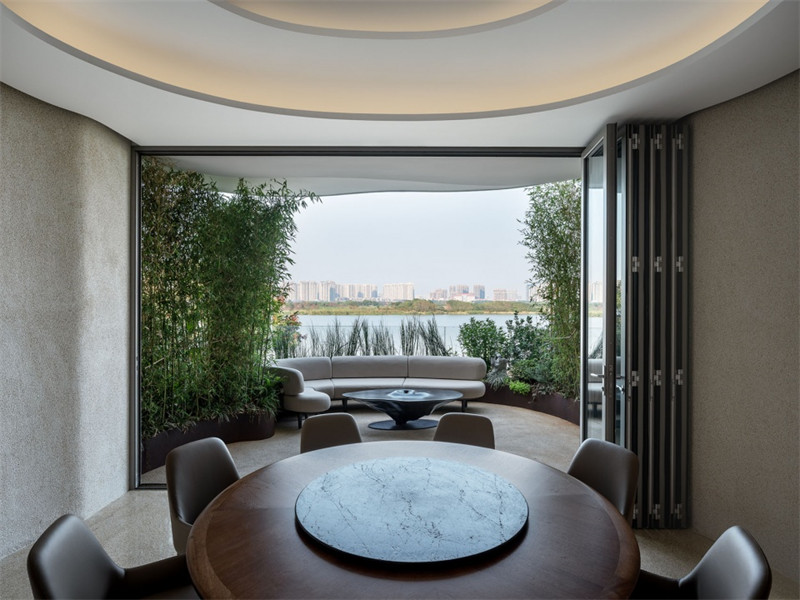文章导读:宜兴遇餐厅地处东氿湖畔的一处现代风格商业群落,餐厅设计的独特之处在于将江南人文传统中自然、恬淡的中式环境与现代生活进行衔接,使当地的竹林、紫砂、楼榭,与天然湖景合力营造出此处特有的诗意。在这样的意境中把酒言欢岂不乐哉。