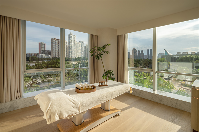 所有套房的室内色调以温暖柔和为主,空间线条简约疏朗,搭配素雅浅色系的柔软织物软装,兼顾有温度的触感与质感交融呈现。明媚的阳光与窗外优美景观引导人们安心放慢脚步,在日常生活中体悟生命之美。