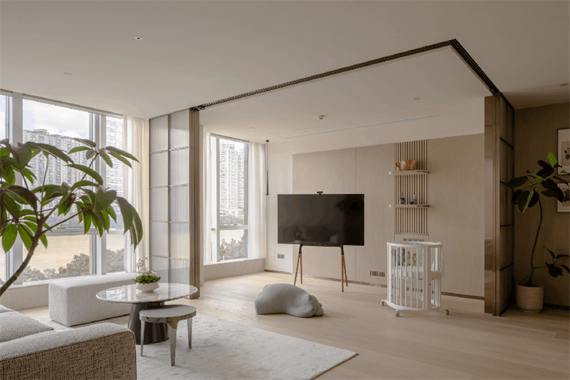 套房内空间开阔,采光充足,力求营造轻松宁静、纯粹质朴的氛围。结合项目属性,摒弃展示型的表层设计,所有设计背后都源于实用性的考量。基于安全性的考虑,室内任何锐利的角度都被尽可能弱化,比如墙面的转弯处都以弧形处理,软装家具多为圆角造型,从触觉到视觉均令人感到细节满满,安心居住。