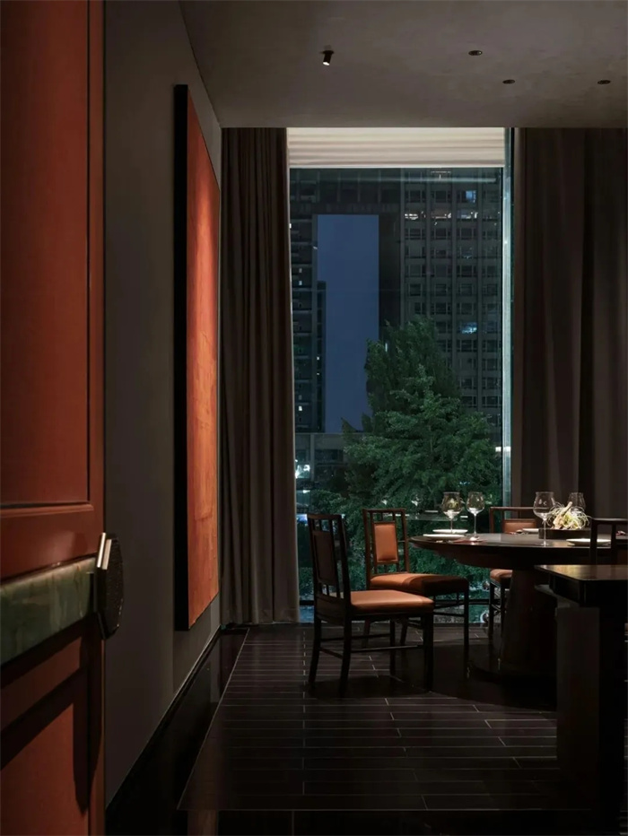 空间充满可探索的丰富意趣,可观赏、可把玩、可愉悦感官,周身沉浸于其间,感受每一处场景带来的意外之趣,透过视觉,抵达内心,驻足细思揣摩,构成与城市文化的共鸣。当夜色来临,窗外长安街繁华景象尽入眼帘。当如乘载乌篷船,行于夜色江上,恣意洒脱,自在逍遥。