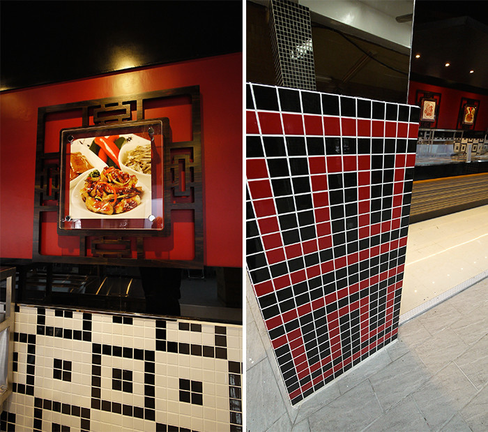 配合业主主打的中式菜单,餐饮空间在红色的主题色上,以紫檀木、马赛克、茶镜、人造石、窗花、烤漆玻璃、木纹美耐板等质材,拼画出东方禅风的图腾感,将快餐跳脱家庭菜的定位思维,提升空间质感之余,一并提携商品的美味印象。
