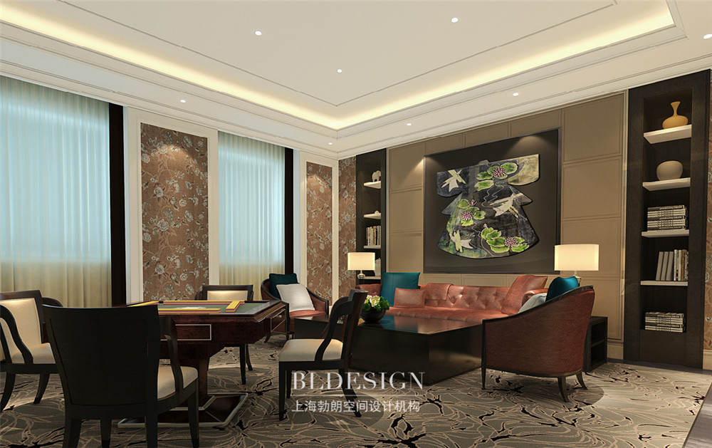 龙脉庄园高级会所集合了高级SPA、棋牌室、餐厅、会议室等多种功能区域。在私人会所设计方案上,师承法国宫廷建筑精髓,打造皇家专享的顶级艺术殿堂;设计师充分发挥“贵族”精神:奢华、经典、高贵、艺术全方位展现!外加旗袍、国画等中国元素的趣味混搭,以及墨绿色系的华丽渲染,将私人会所空间经典奢华的气息推向极致!