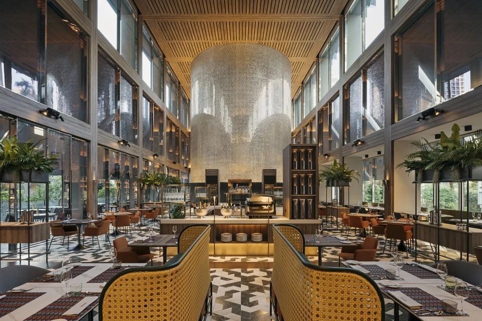 酒店的外观采用了流线型的设计,使得整个建筑看起来如同一个巨大的玻璃盒子,反射出周围的城市景象。而内部的设计则充满了自然元素,大片的落地窗让阳光洒满整个空间,与室外的绿色景观相映成趣。