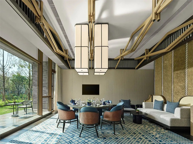 东莞松山湖悦榕庄是东方文化与现代奢华的完美结合。酒店空间设计从东方美学中汲取灵感,融入“水、木、土”等元素,以岭南富有代表性的“庭院文化”为设计语言与蓝本,近揽青山翠湖,博采古村遗韵,恰如其分地融入东莞石排塘尾、茶山南社古村落的水乡元素为灵感与点缀,在静谧的松山湖畔打造出一处临水而宿,与自然融居共生的“当代岭南灵感庭院”。