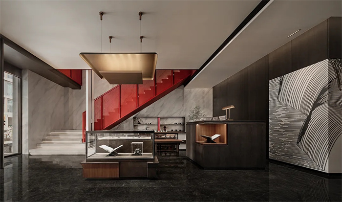 精致的方形盒子接待台与收藏品展示柜一前一后互相呼应,拉近人与人之间的距离,诠释着一种包容、融汇的内在关系,展现出东方文化与现代简约相融合的宽简哲学。以营造静谧内敛的空间氛围为重点,从艺术的视角,将文化底蕴融入到空间设计中。