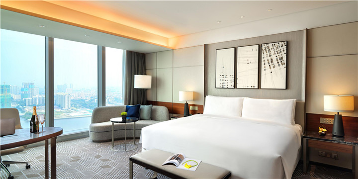 文章导读:于2018年1月29日正式揭幕的广州保利洲际酒店位于琶洲,是广州市的首家洲际酒店。这里曾因长期在海外贸易中扮演重要角色,并见证了“海上丝绸之路”的繁荣而为人们所知。今天就随着勃朗商务酒店设计公司小编一起来欣赏这家新解开面纱的国际五星级标准商务酒店新宠儿!