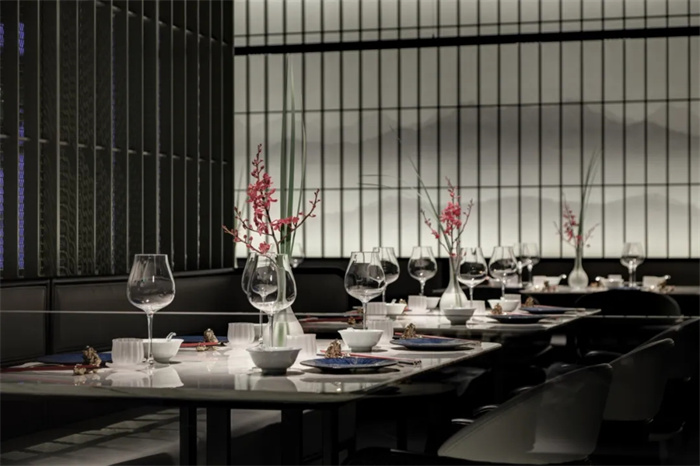 山水抒其精神,草木颂其韵致。餐厅设计师从古典造园手法中析出“法则”,以我们感知的内在逻辑与审美,及自我的生命体验,构建出关于建筑、自然、构成、材料、空间的“抽象几何性”。自此,园林“生长”,铺陈新的叙事,却仍留古典园林之妙趣。“万物之始,大道至简,衍化至繁”设计师化繁为简,洞开一扉,安放恒久之寂,得见天地阔然。