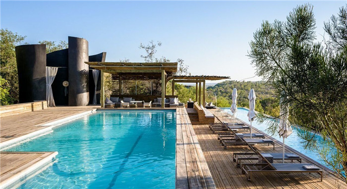 因此,游客常常称这家酒店为“只有六间房间的避难所”。不过修葺后的斯威尼别墅区又新增了“水塘套房”,顾名思义,一定与水有关。水塘套房配有一个河边的甲板,可以临河赏景,如果游客需要两间卧室,还可以临时改装。所有的房间都有户外淋浴间,为了最大程度欣赏到自然风光,每间房间都配有室外观景台。观景台上有供休憩歇息的床榻,白天你可以看窗外野生动物四处游弋和奔跑。到了晚上,你还可以躺着仰望南非的星空。除此之外,新增项目还包括刚翻新的厨房、露天餐厅、冬季休息室以及取暖用的火坑。