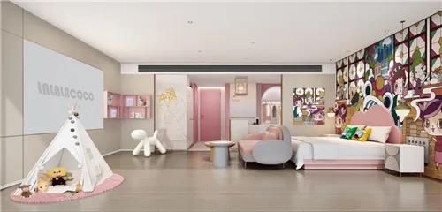 酒店IP源自LALALACOCO,是HelloKitty原作者、日本动漫设计师清水侑子的最新创作,也是她时隔11年后再执画笔,重新设计的动漫形象。酒店室内设计以粉色为主题色,实景还原LALALACOCO电视动画中艾拉小镇场景融入LALALACOCO的动漫形象,充满童心的设计,纯真烂漫,是集梦幻与纯真于一体的浪漫世界。可可酒店不仅是游玩休闲娱乐住宿的一站式天地,更是还原少女心的天堂,让游客充分领略二次元的神奇魅力。