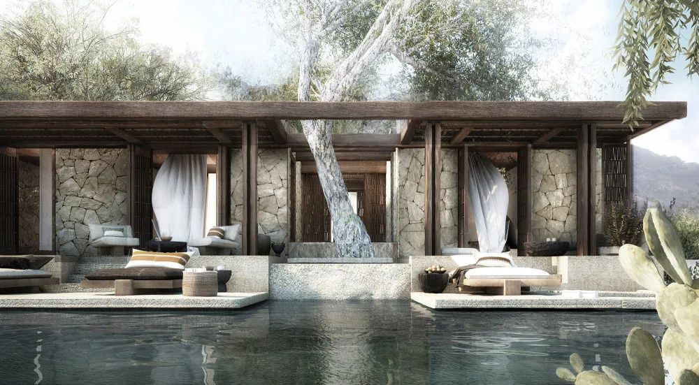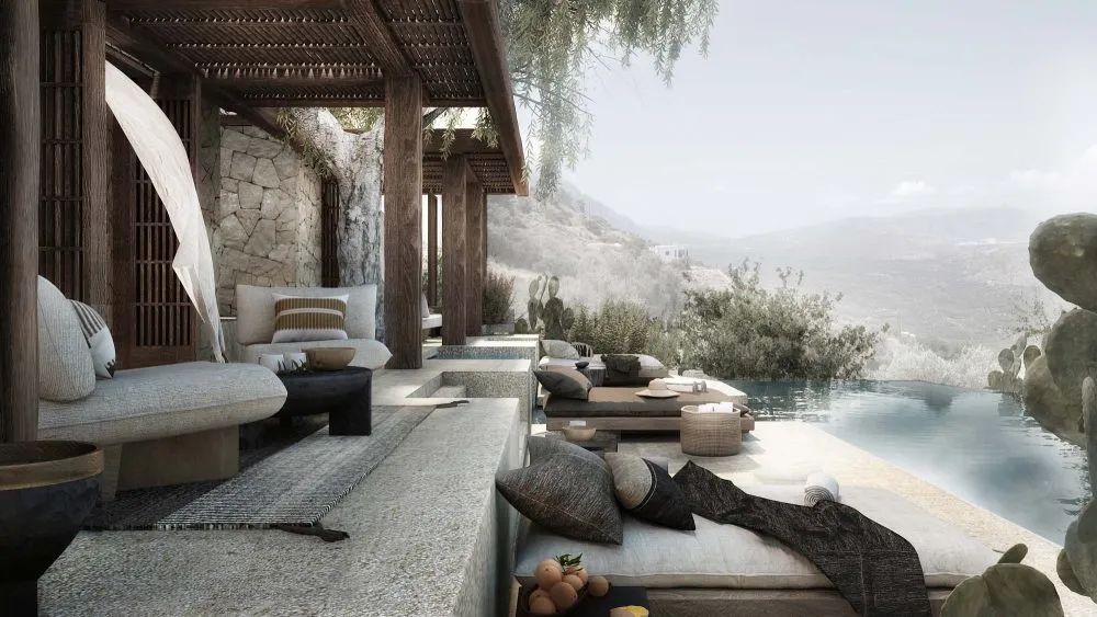 民宿“室内外”的二元性贯穿整个项目。房子内部和外部的房间布局创造了一个复杂而充满活力的“私人景观”,被沉浸在大自然中的水所包围。朴素而简约的建筑方法,结合原材料和定制创作的使用,揭示了一段轻松的旅程——慢生活的简单。