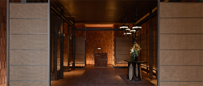 室内变得节奏温煦和简约起来,像是一首温和的变奏曲,立面成为了公共空间中红砖的不一样的延伸面,无缝衔接了主旋律的精妙之处。空间有着虚实相生的妙趣,设计关注了建筑的复杂性,并非一味追求中式的隐逸乐趣,而是将不一致的、东南亚的、热带的、显性的,复杂的,拿捏平衡融入建筑,以此促成由具象的装饰而非单纯的形式传递出整体的、更为活力、浓烈和更带温度的信息。
