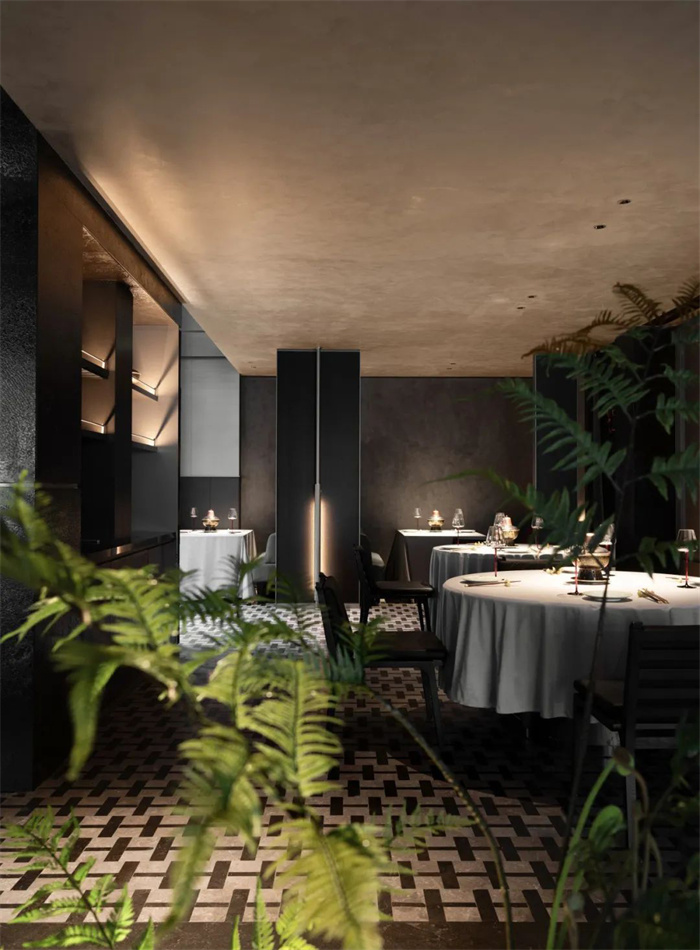京π火锅店设计中,结合其商务宴请的客群定位,逐渐找到建筑、空间、器物的落脚点,让空间充满生命灵气的意象与精神。