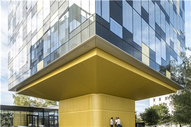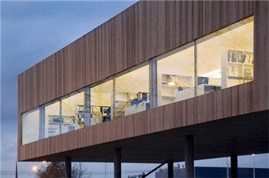文章导读:办公楼北边的外墙形成了一个紧凑的建筑构造,建筑外部以交替的栏…