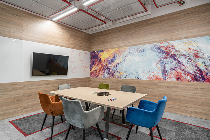 设计将重点放在对功能的布局上,以满足年轻团队灵动活力的工作需求。整体空间通过对色彩的诠释构建一个充满激情的青春氛围,以激发创造性思维。