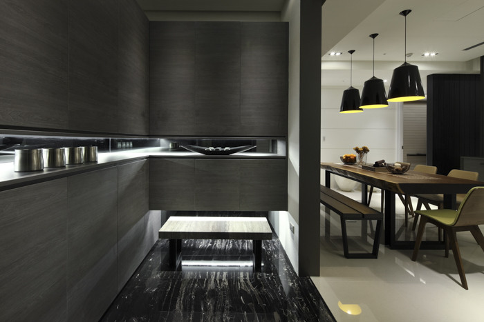 这股暗的气量,透过巧妙的安排以及运用,让光线在空间里行走流动,光线的安排出戏剧性,华丽的舞台剧般,各个角色有默契的走位、区域停留在最恰当的位子...