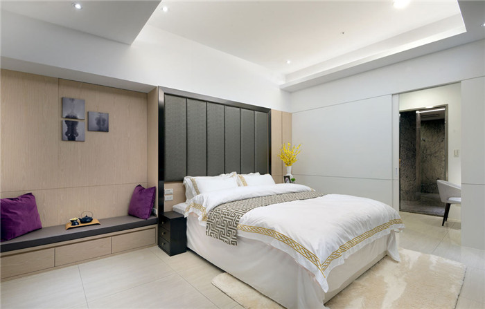室内运用线条与石材,呈现简约精致感,一道晶莹剔透的白玉石墙,首先映入眼帘,刻意不做过多缀饰,凸显白如截肪的质地颜色;加上大理石拼花地坪,绽放出摇曳生姿的花样,带来大器尊贵的迎宾气势。特别的是,利用精湛工艺技术,以白玉石打造出拱门,并延展出电视墙体,经斜角切割呈现立体感,造型一气呵成,流露出低调奢华氛围。