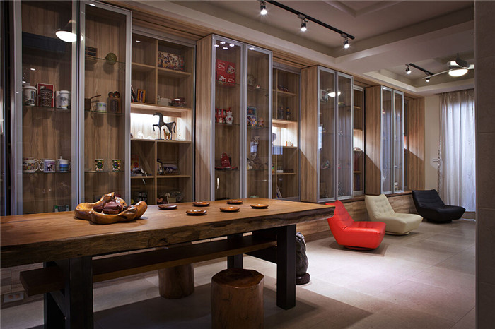 文章导读:整个豪宅设计融入东方木质调性的人文温润,佐以西方开放式的生活格局,让日光大量地涌入室内,在上千本图书的围绕下,家也渐渐开始散发出温暖的味道。夫妻二人都从事教职工作,因此非常重视阅读,除了期待在任一层楼都能舒适地沈浸书香,也希望拆除原本封闭的隔间设计,让视线毫无阻碍地延展。设计师重新安排动线与格局,尽可能串联每楼层面积,以开放而灵活的思考逻辑,汲取光线自然穿透,建立舒适宽敞的豪宅空间。