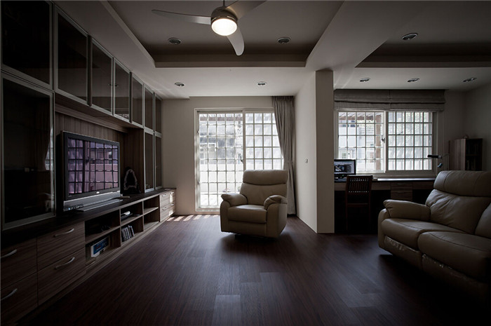 一楼订制媲美图书馆等级的藏书空间,克服了系统柜承重力的限制,可以直接坐于台面看书的设计,让全家人可以一同召开读书会,更潜移默化地影响孩子养成良好的阅读习惯。而二楼与三楼皆采取开放形式,尤其小孩所使用的空间为夹层格局,用以满足孩童的私人需求,偶而能邀请学校朋友来家中作客,或是由家长陪同做作业与学习,让孩子提早拥有自主支配的个人空间。